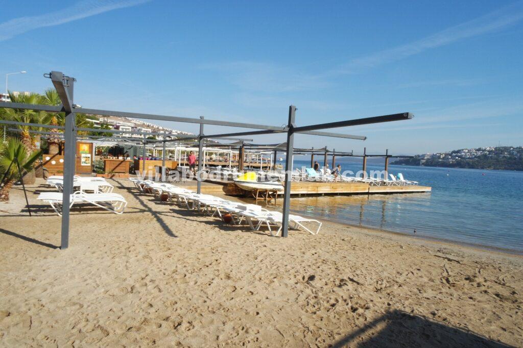 Kiracıların yararlanacağı ücretsiz özel plaj vardır ve özel plajın eve mesafesi 2 km.dir. Plaj alanında şezlong ve kafeterya duş wc hizmetlerinden ücret ödemeden yararlanacaksınız.