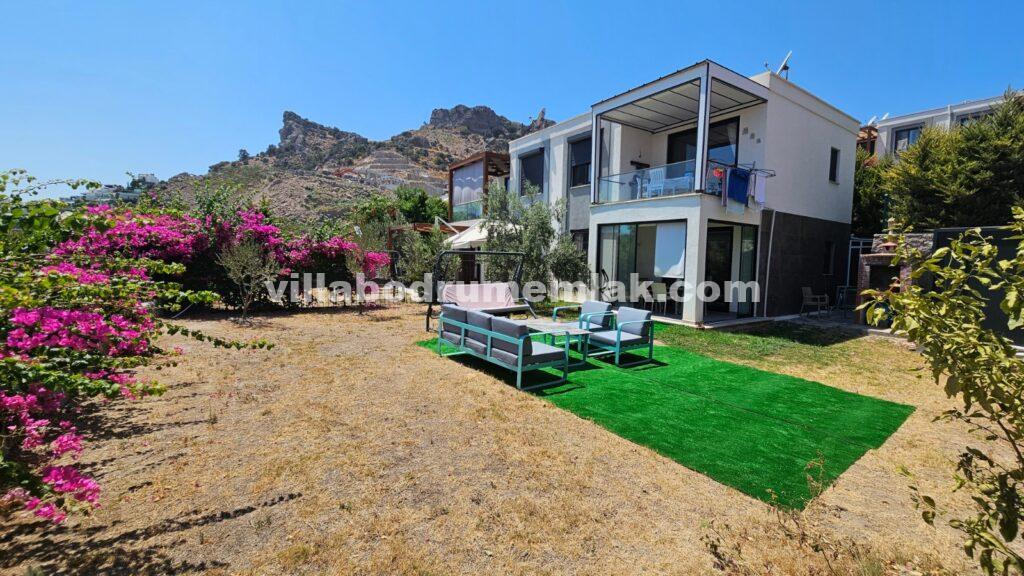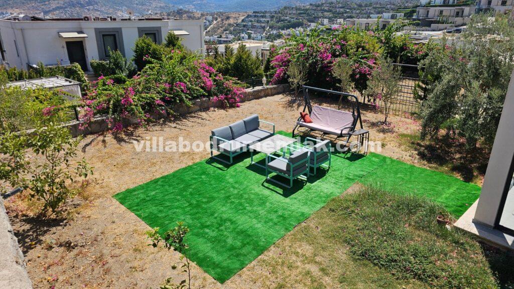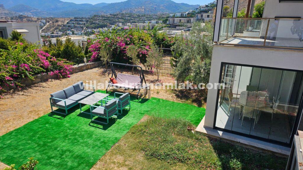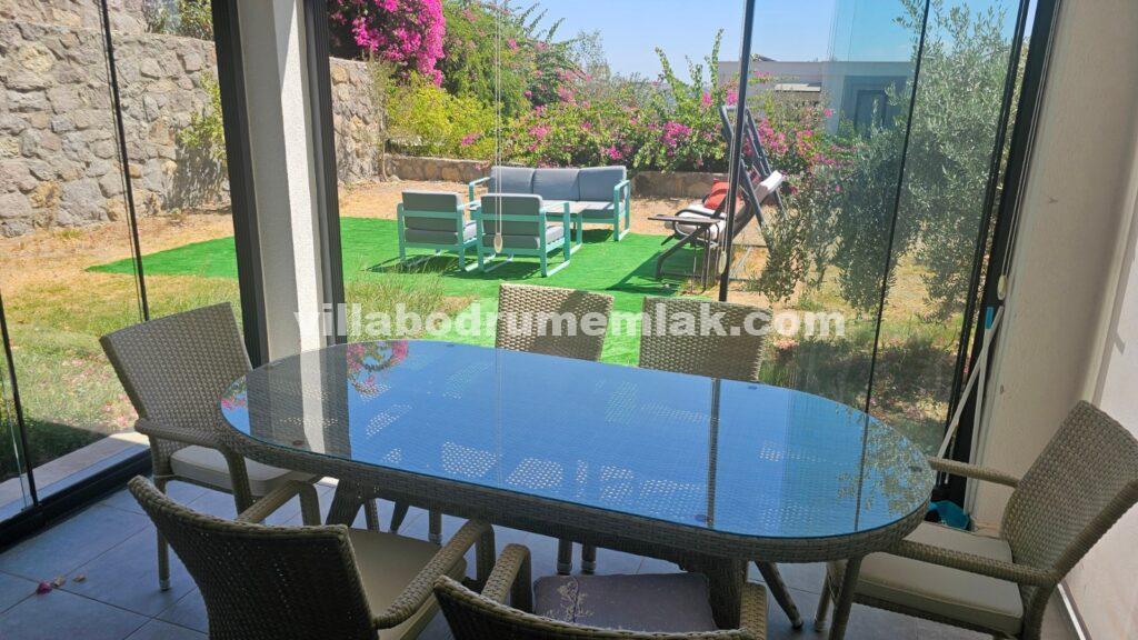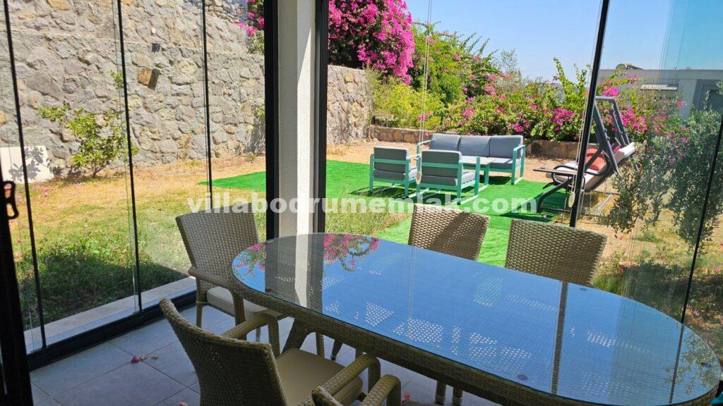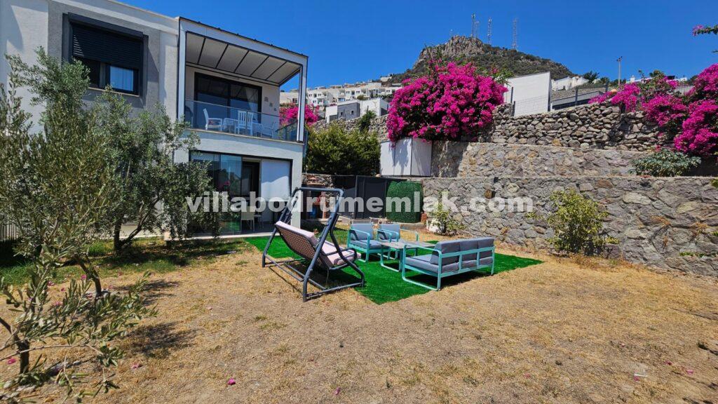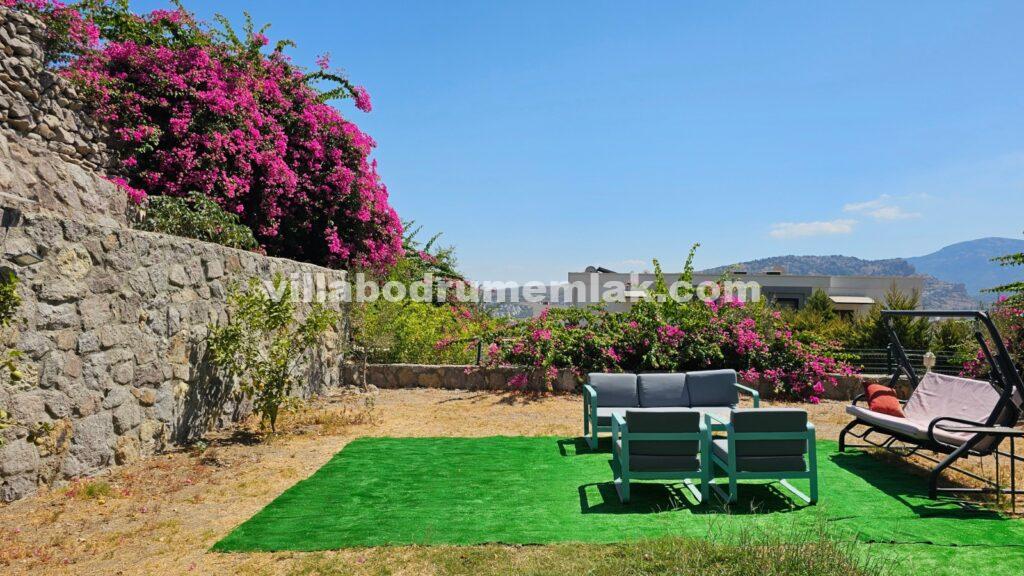 Ev Bodrum Gündoğan merkeze ve denize yürüme mesafeli Begonvil ağaçları ile donatılmış geniş ve ferah bahçeli bahçe katı yeni daire şeklindedir.